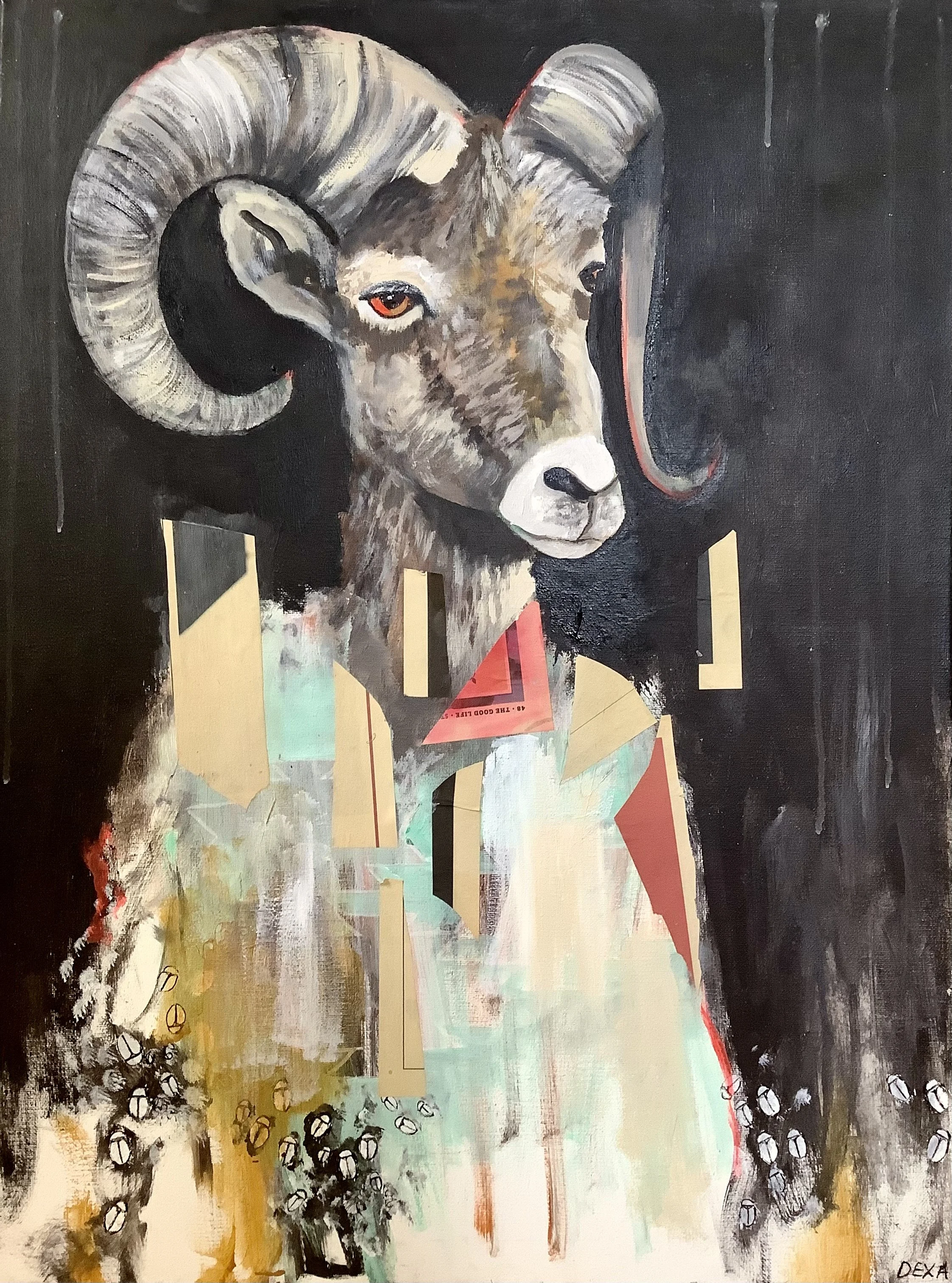 I started this series in 2013 and continue to experiment with the concept of anthropomorphic imagery. I’m interested in creating varied visual representations that address technology’s impact on human behavior and identity. The prevalence of social media, and technology in general, continues to shift how we interact with our physical environment and the ways we engage socially in regards to interpersonal communication, authentic connection, and sense of identity. The anthropomorphic figures and beetle patterns are allegorical and abstract representations that portray a collective disconnection to nature and a social environment that operates in isolation.The beetles are used interchangeably to show either preservation of self and environment juxtaposed with the deterioration of both.These paintings are a combination of personal relationships and generalized expressions regarding disconnection, attachment, loneliness, vulnerability, and loss.
