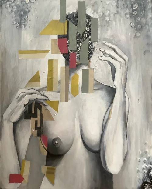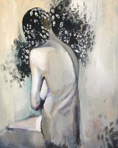 Beetles are a central theme to my current work and I use them as pattern in various ways. In the beetle body series they are used as a form of disruptive modification. My paintings and drawings are redefined versions of images gathered from fashion editorials, media imagery, or altered photographs. The beetle patterns are a visual protest and tainting of body representations in advertising with regard to beauty standards, gender norms, and body perfection. Being bombarded with white standards, unrealistic beauty and body ideals, and a fixed version of “femininity” , other bodies and gender identities become marginalized and disregarded. This series is a contamination of those standards of “femininity” and a visual statement against these long-standing and ongoing constructs.